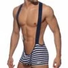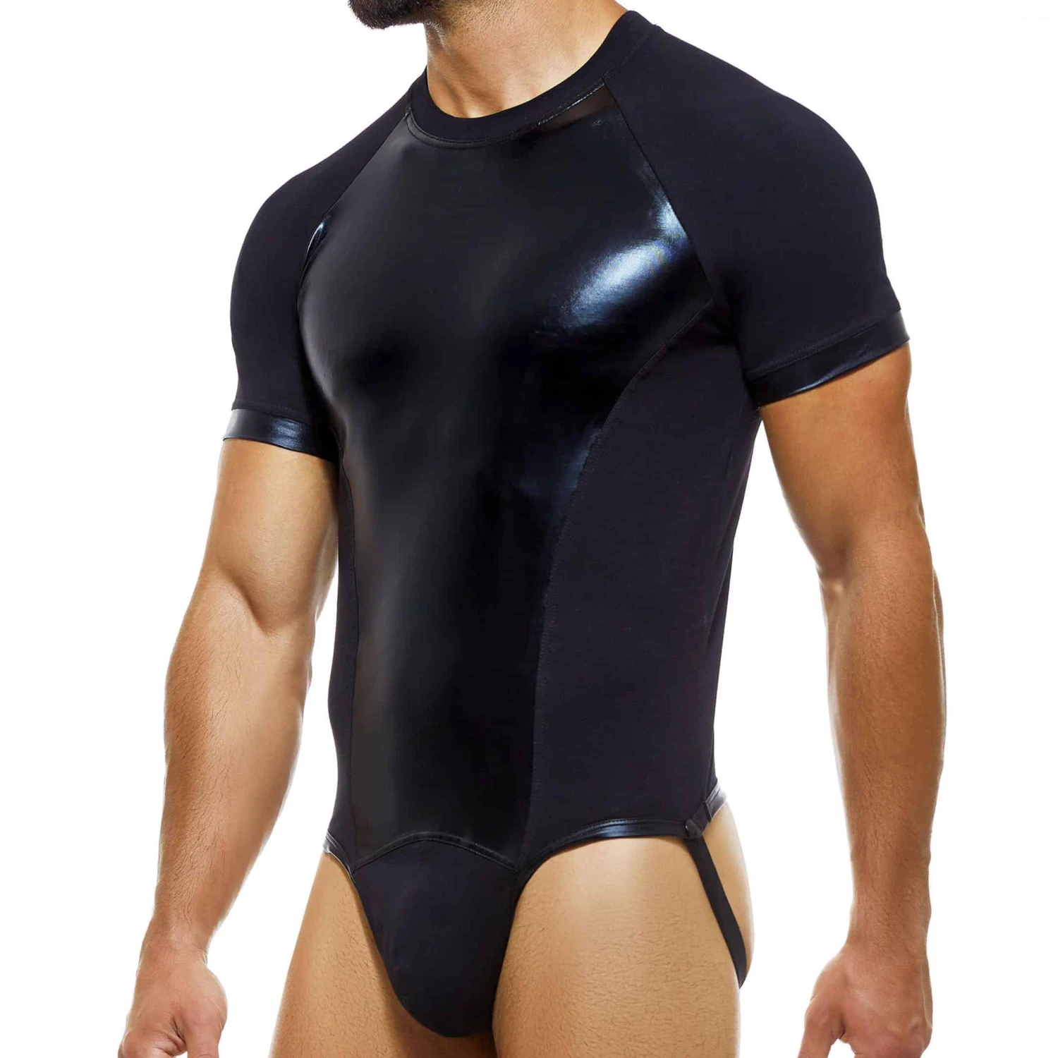 Body jock ultra sexy en tissu lisse et brillant imitant le latex. Coupe trÚs ajustée pour souligner votre musculature. 2 boutons-pression pour détacher les bandes élastiques. Logo Modus Vivendi en silicone.