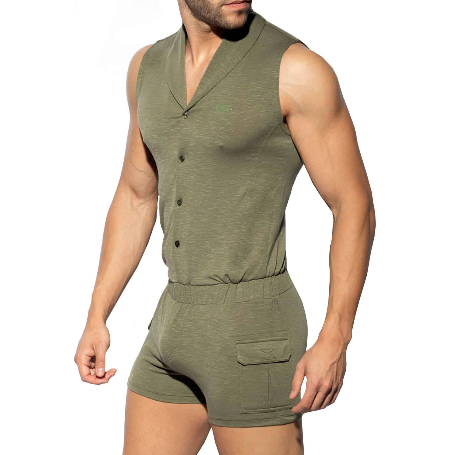 Body sans manche en microfibre fine, légÚre et respirante de couleur unie. Fermeture 4 boutons. Elegant col chùle. 2 poches à rabat plaquées sur les cuisses. Elastique à la taille. Logo ES Collection sur la poitrine.