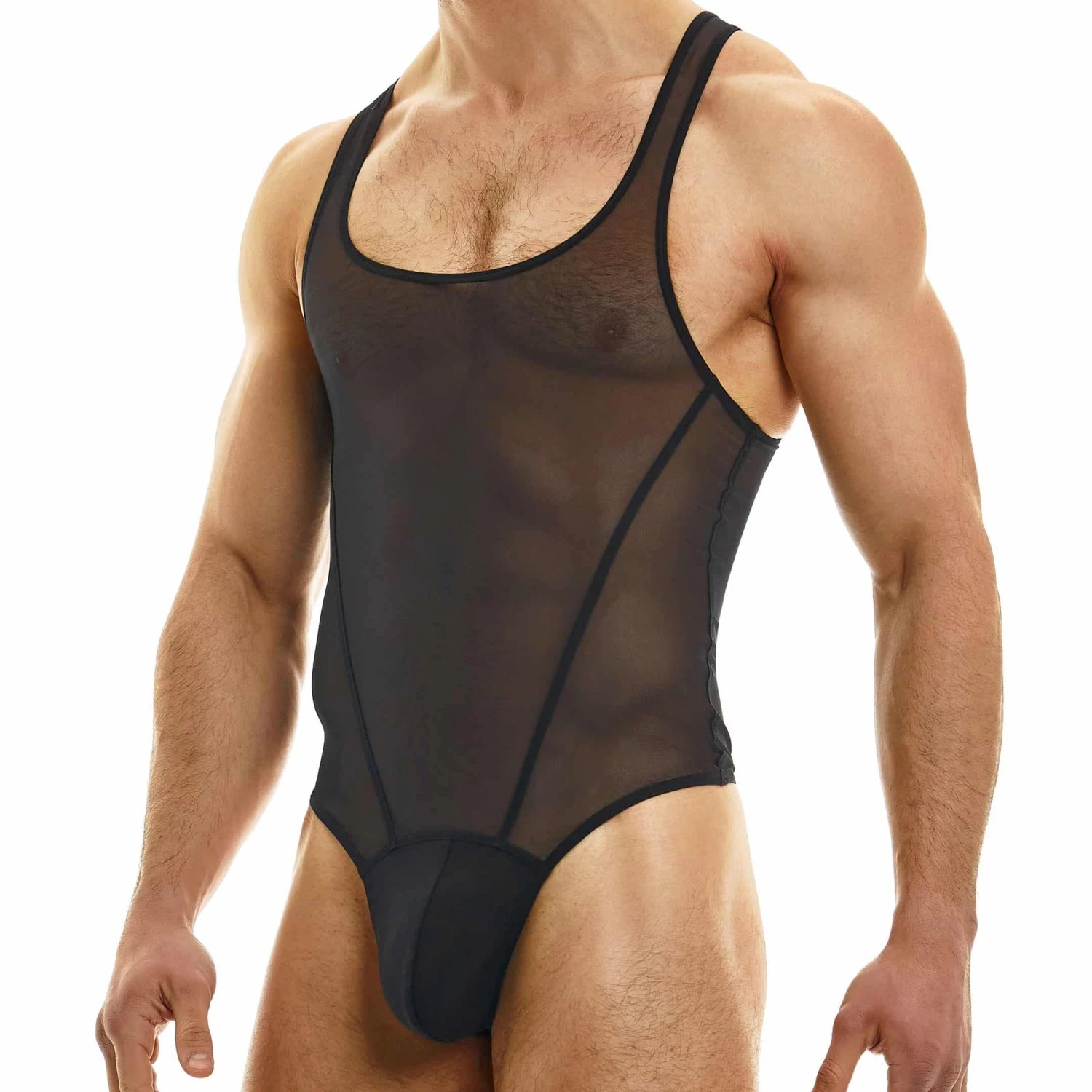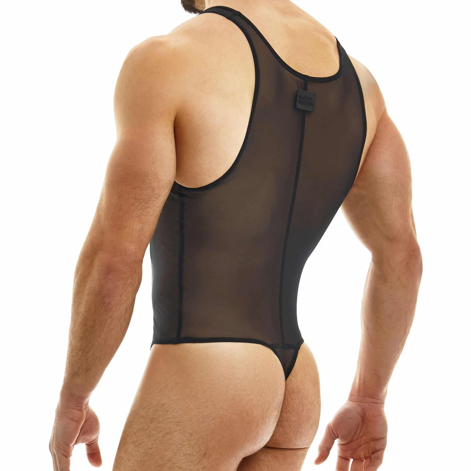Bodystring trÚs sexy et ajusté en mousseline transparente. Poche frontale doublée. Logo en silicone en haut du dos.