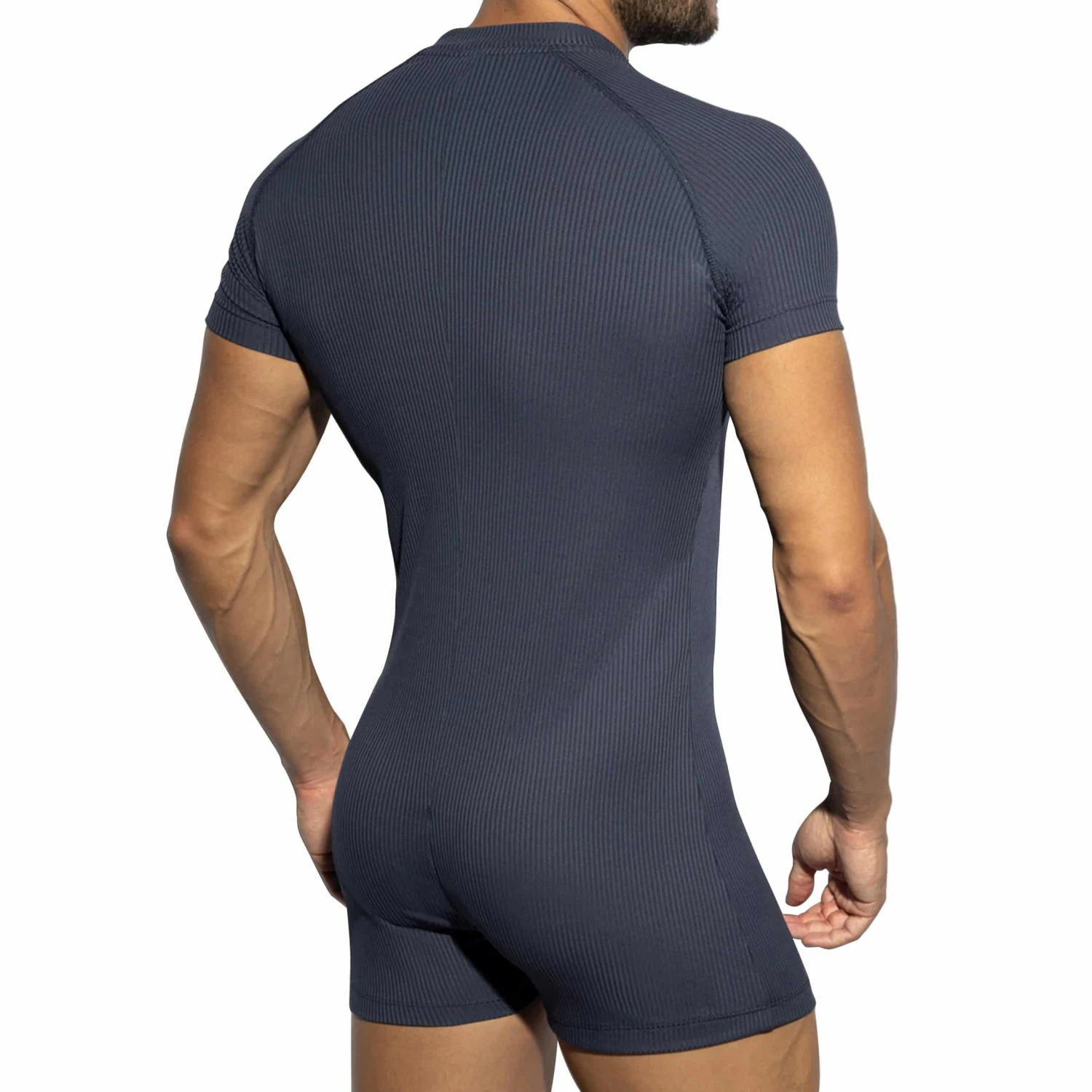 Body trÚs doux et confortable en microfibre extensible cÎtelée et recyclée. Fermeture par boutons pression et fermeture Eclair sur la partie inférieure. Col rond et manches courtes. Logo ES en silicone cousu sur la poitrine.