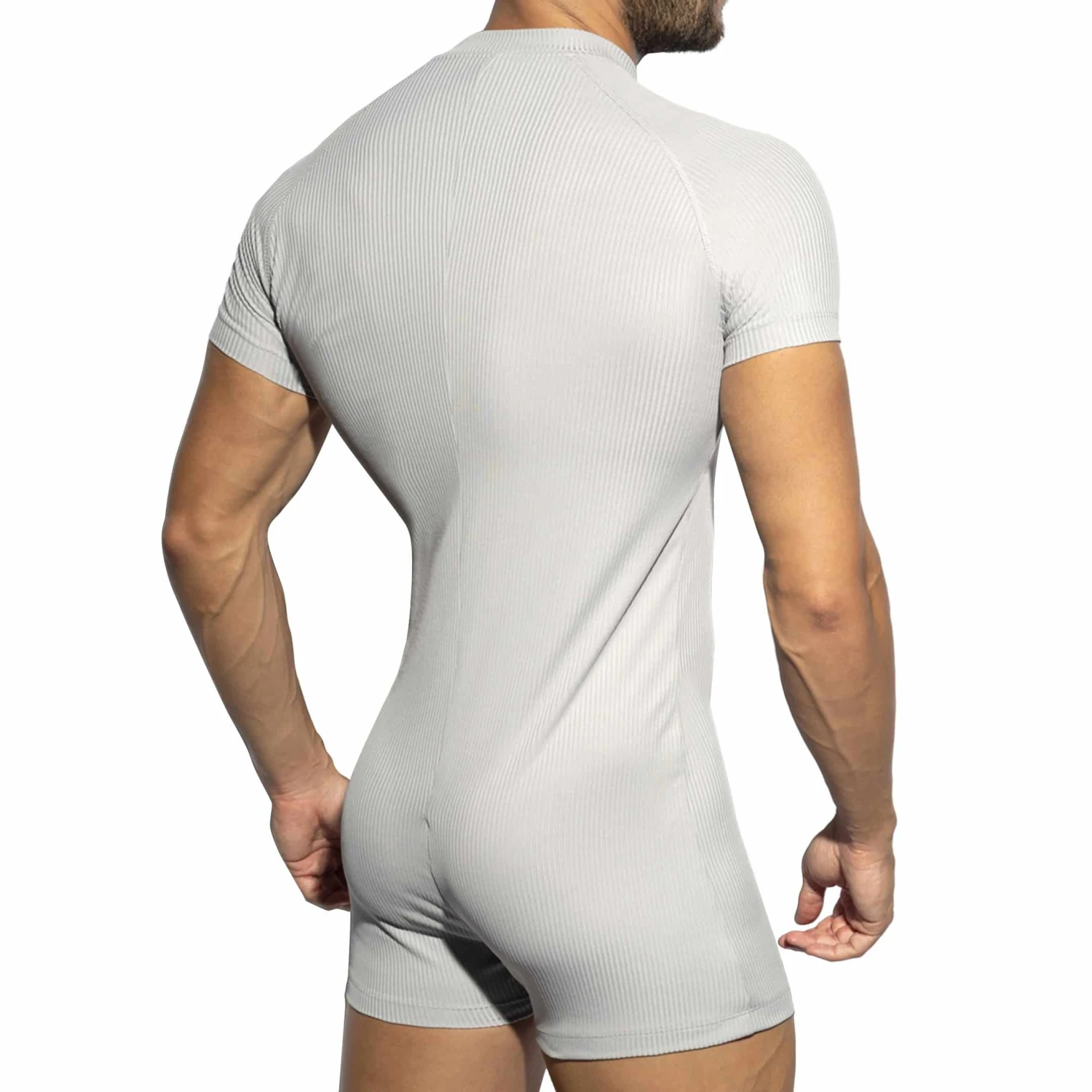 Body trÚs doux et confortable en microfibre extensible cÎtelée et recyclée. Fermeture par boutons pression et fermeture Eclair sur la partie inférieure. Col rond et manches courtes. Logo ES en silicone cousu sur la poitrine.