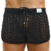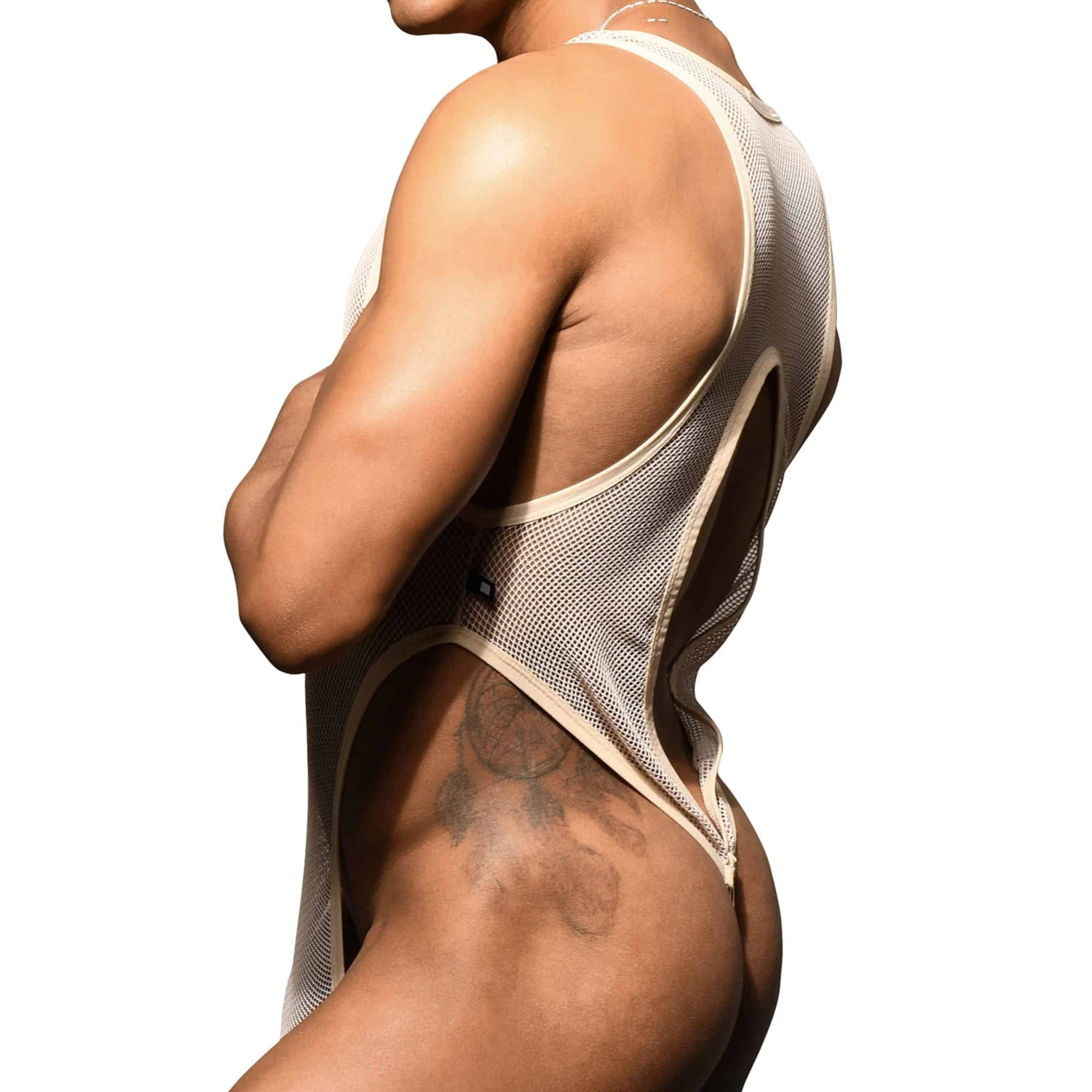 Body string trÚs sexy en résille non doublée pour une totale transparence. Coupe ouverte dans le dos. Poche Almost Naked, qui épouse et soutient les organes génitaux, sans les comprimer. Anneau métalique sur chaque bretelle et sur le haut des fesses.