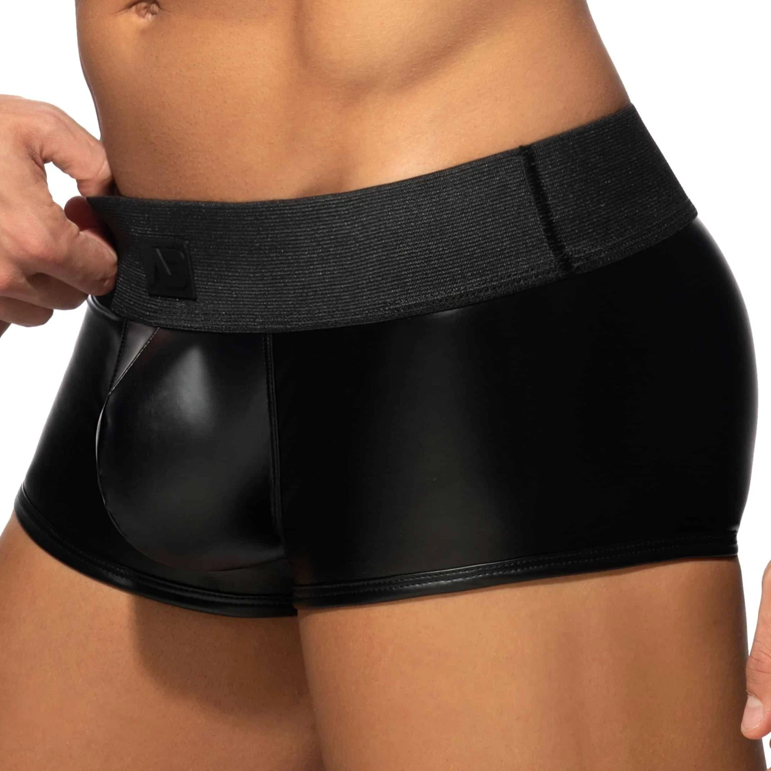 Boxer innovant en microfibre brillante imitant le caoutchouc, pour un look trÚs fetish. Fermeture Eclair fonctionnelle pour un accÚs direct aux fesses. Technologie RingUp intégrant un anneau cock ring en silicone (diamÚtre 5 cm, amovible par bouton pression) pour une érection plus dure et plus longue. Ceinture élastique extra-large signée du logo AD en silicone.