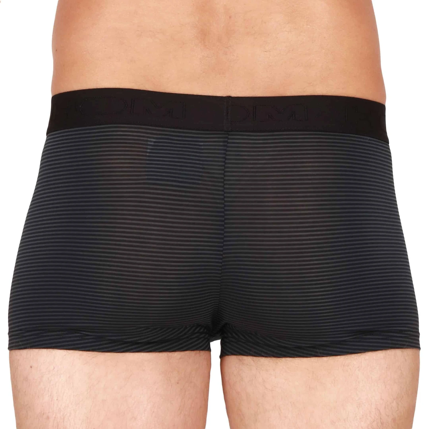 Boxer en modal doux et soyeux. Rayure fine et élégante. Coupe classique assurant confort et maintien. Ouverture horizontale HO1 brevetée par HOM, aussi pratique pour les droitiers que les gauchers. Ceinture élastique HOM.