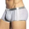 Boxer taille basse trÚs ajusté en voile recouvert de paillettes. Tissu fin, extensible et transparent. Belle poche frontale non doublée. Ceinture élastique avec étiquette ES Collection en silicone.