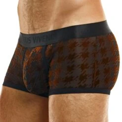 Boxer taille basse trÚs luxueux en microfibre semi-transparente. Motif pied-de-poule en velours. Ceinture élastique signée Modus Vivendi.