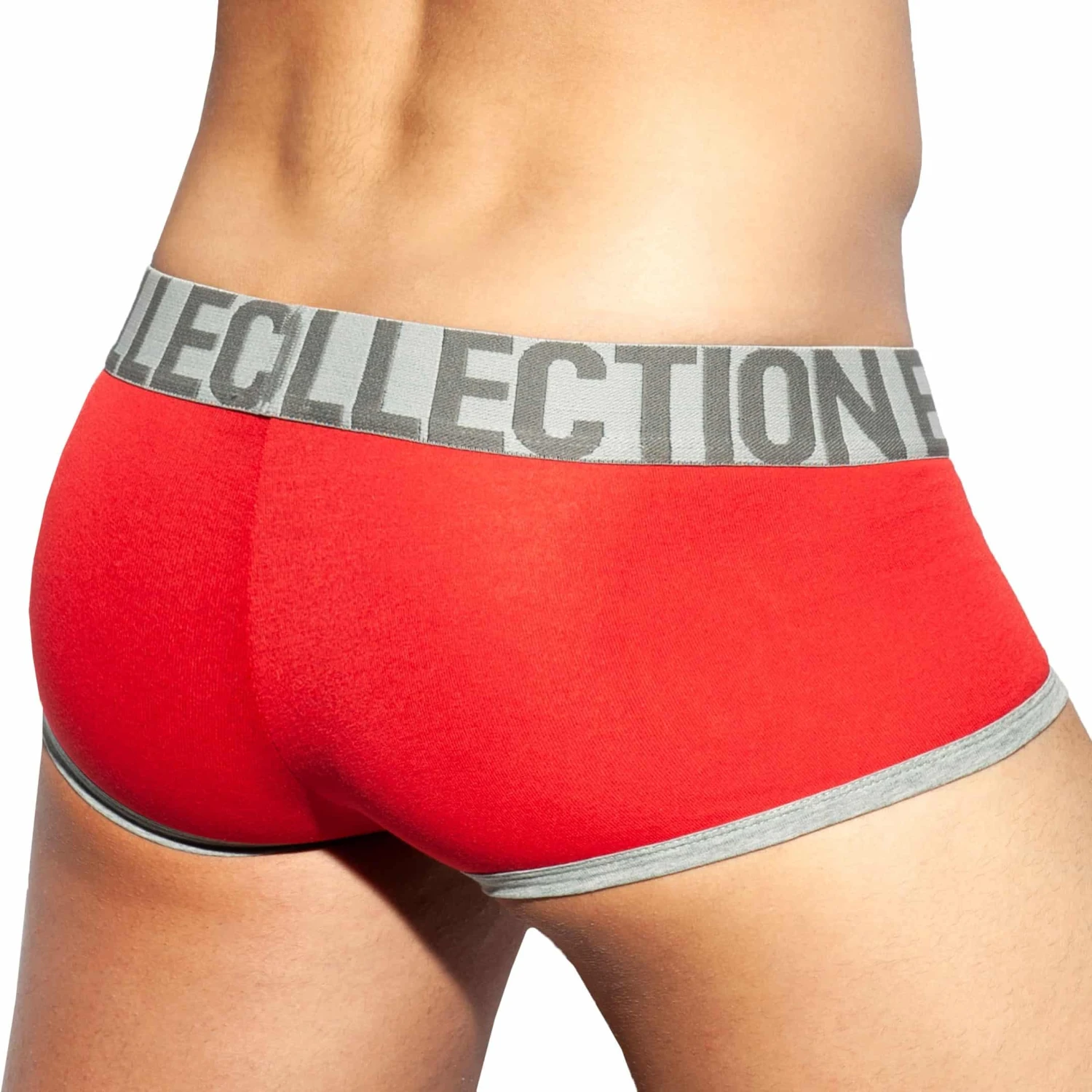 Boxer taille basse trÚs ajusté en viscose ultra douce, soyeuse et confortable, pour un effet seconde peau. Bordures de couleur contrastée. Belle poche frontale préformée. Ceinture élastique signée ES Collection.