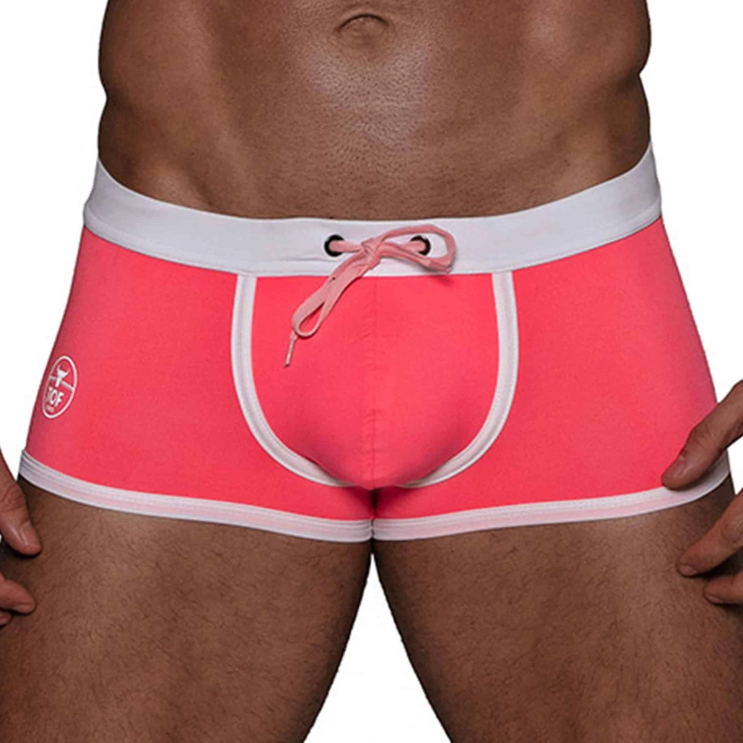 Boxer de bain en microfibre extensible et lĂ©gĂšre de couleur fluo. Tissu rĂ©sistant au chlore et Ă l’eau de mer. Coupe taille basse, courte et ajustĂ©e, sans couture sur les cĂŽtĂ©s ni sur les fesses. Bordures de couleur contrastĂ©e. Grande poche frontale doublĂ©e. Ceinture Ă©lastique avec cordon de serrage. Logo TOF Paris imprimĂ© sur la cuisse droite. Fabrication française.