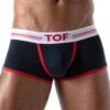 Boxer innovant doté de bandes élastiques externes fixées à la ceinture par 4 rivets métalliques. Les straps augmentent votre volume frontal et soulÚvent vos fesses pour leur donner un joli galbe bien rond. Poche frontale doublée. Ceinture élastique signée Modus Vivendi.