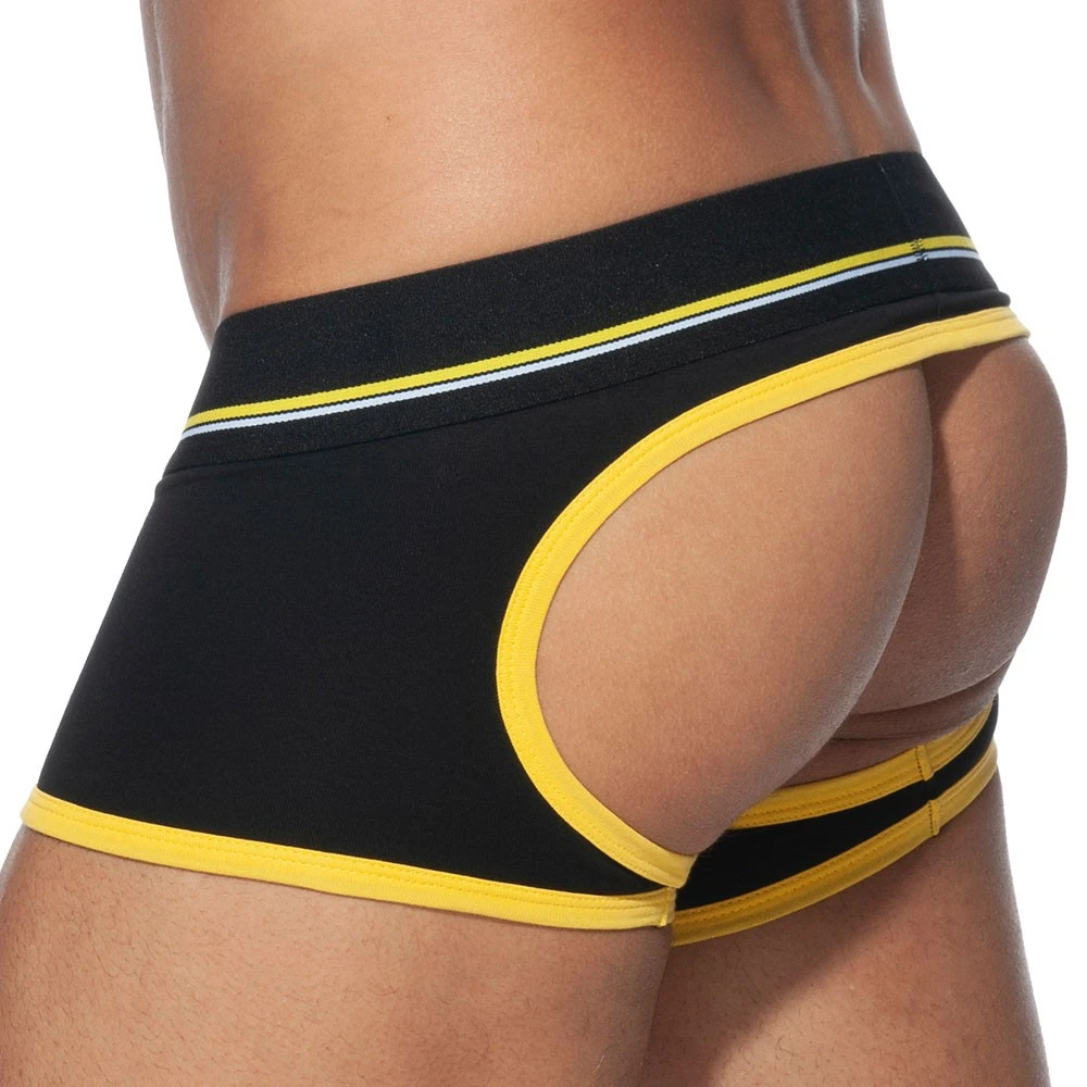 Boxer taille basse, original, sexy et super confortable en coton doux et confortable. L’arriĂšre a Ă©tĂ© dĂ©coupĂ©, Ă la maniĂšre d’un jockstrap, afin d’offrir une totale libertĂ© de mouvement. Bordures de couleur contrastĂ©e. Ceinture Ă©lastique signĂ©e Addicted. EXCLUSIVITE : coupe conçue par Les Dessous d’Apollon – Inderwear.