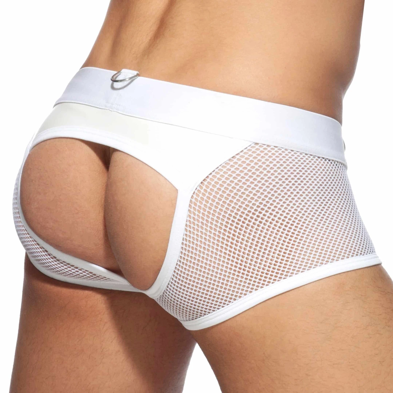 Boxer en mesh transparent, dont la maillage large laisse peu de place Ă l’imagination. L’arriĂšre a Ă©tĂ© dĂ©coupĂ©e, comme sur un jockstrap, pour une totale libertĂ© de mouvement. EmpiĂšcements en microfibre imitant le latex. Poche frontale non doublĂ©e. Large ceinture Ă©lastique dotĂ©e de 3 anneaux mĂ©talliques. Logo AD Fetish en silicone.