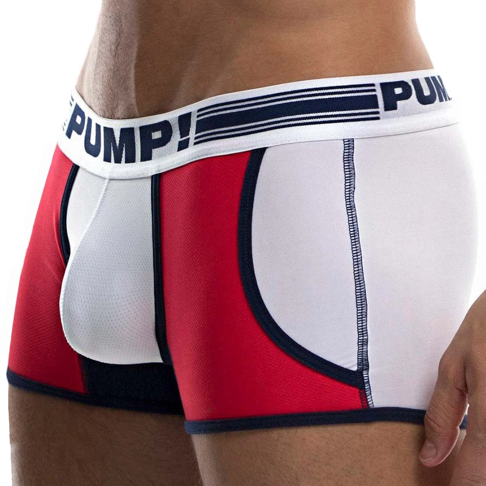 Boxer taille basse trÚs innovant avec sa dualité de matiÚres trÚs réussie. La poche frontale doublée et les 2 poches latérales en mesh respirant et ajouré confÚrent un aspect trÚs sexy et original. La microfibre quant à elle, garantit une douceur intense et un grand confort aux parties arriÚres. Bordures de couleur contrastée. Ceinture large PUMP!