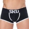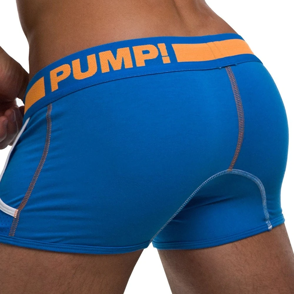 Boxer taille basse, court et trÚs ajusté, dont la particularité est de disposer de deux poches fonctionnelles en mesh ajouré sur les cÎtés. La poche frontale en mesh confÚre un aspect trÚs sexy. Ceinture large PUMP!