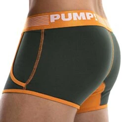 Boxer taille basse, court et trÚs ajusté, dont la particularité est de disposer de deux poches fonctionnelles en mesh ajouré sur les cÎtés. La poche frontale en mesh confÚre un aspect trÚs sexy. Ceinture large PUMP!