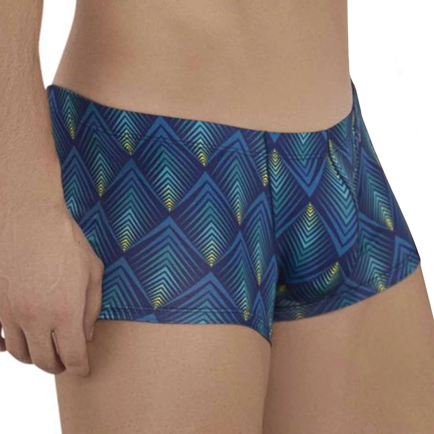 Boxer taille basse en microfibre extensible, douce et confortable. Imprimé Magical trÚs graphique. Poche frontale anatomique dotée de la technologie Jumbo Enhancement Cup enveloppant naturellement votre intimité, pour un maintien trÚs agréable et sensuel. Couture verticale entre les fesses pour un trÚs joli galbe. Fine ceinture élastique recouverte.