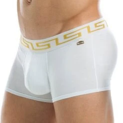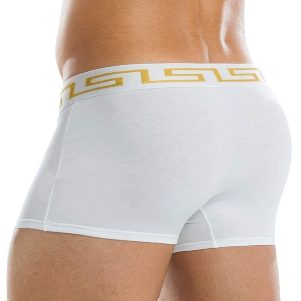 Boxer taille basse en coton doux. Poche frontale doublée pour plus de confort. Plaque métallique Modus Vivendi sur la hanche gauche. Motif inspiré par la GrÚce antique sur la ceinture élastique.