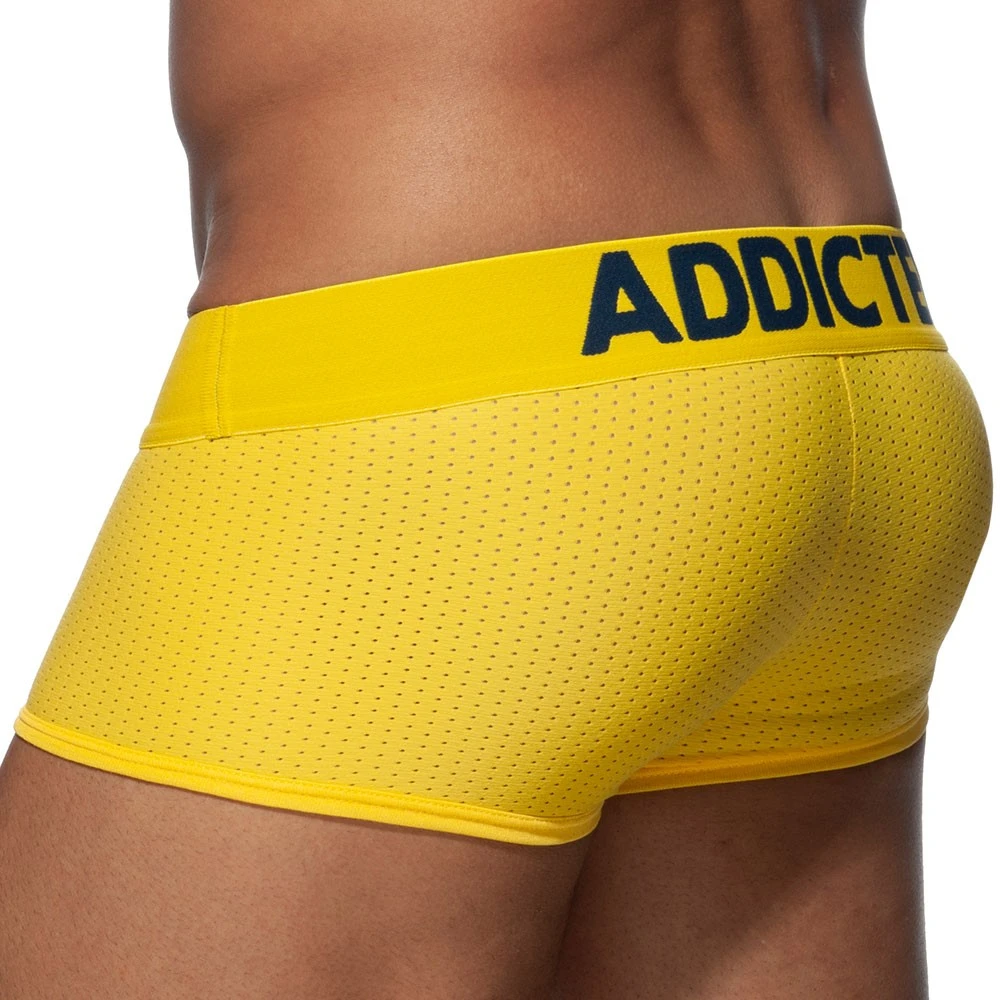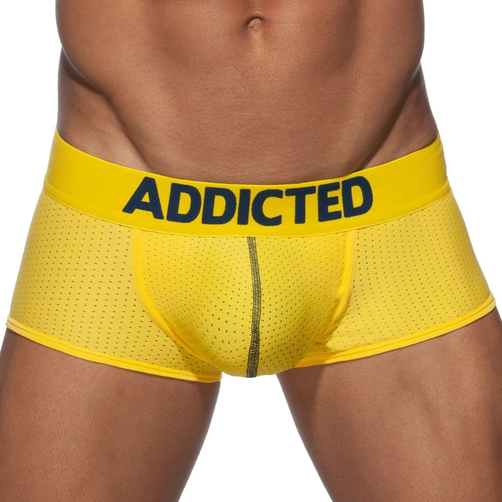 Boxer de couleur unie en mesh respirant, léger et confortable. Poche frontale push up extra-large pour un excellent maintien et une valorisation naturelle de votre masculinité. Ceinture élastique signée Addicted.