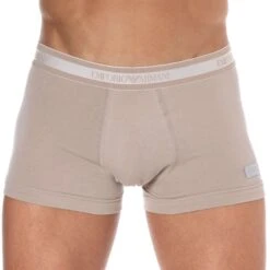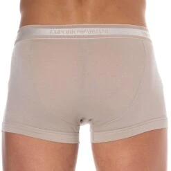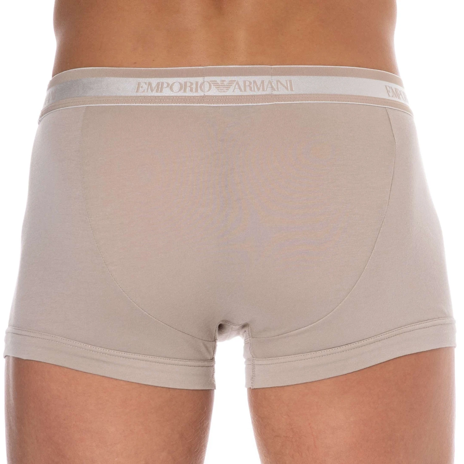 Boxer trÚs doux et confortable en coton biologique extensible. Coupe taille basse simple et élégante. Poche frontale doublée. Ceinture élastique satinée. Logo Emporio Armani sur la jambe gauche.