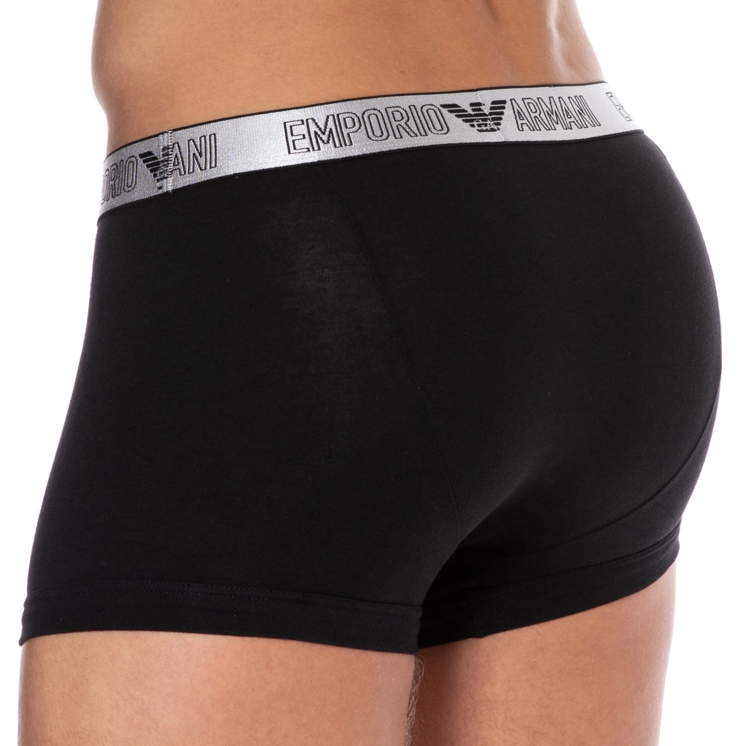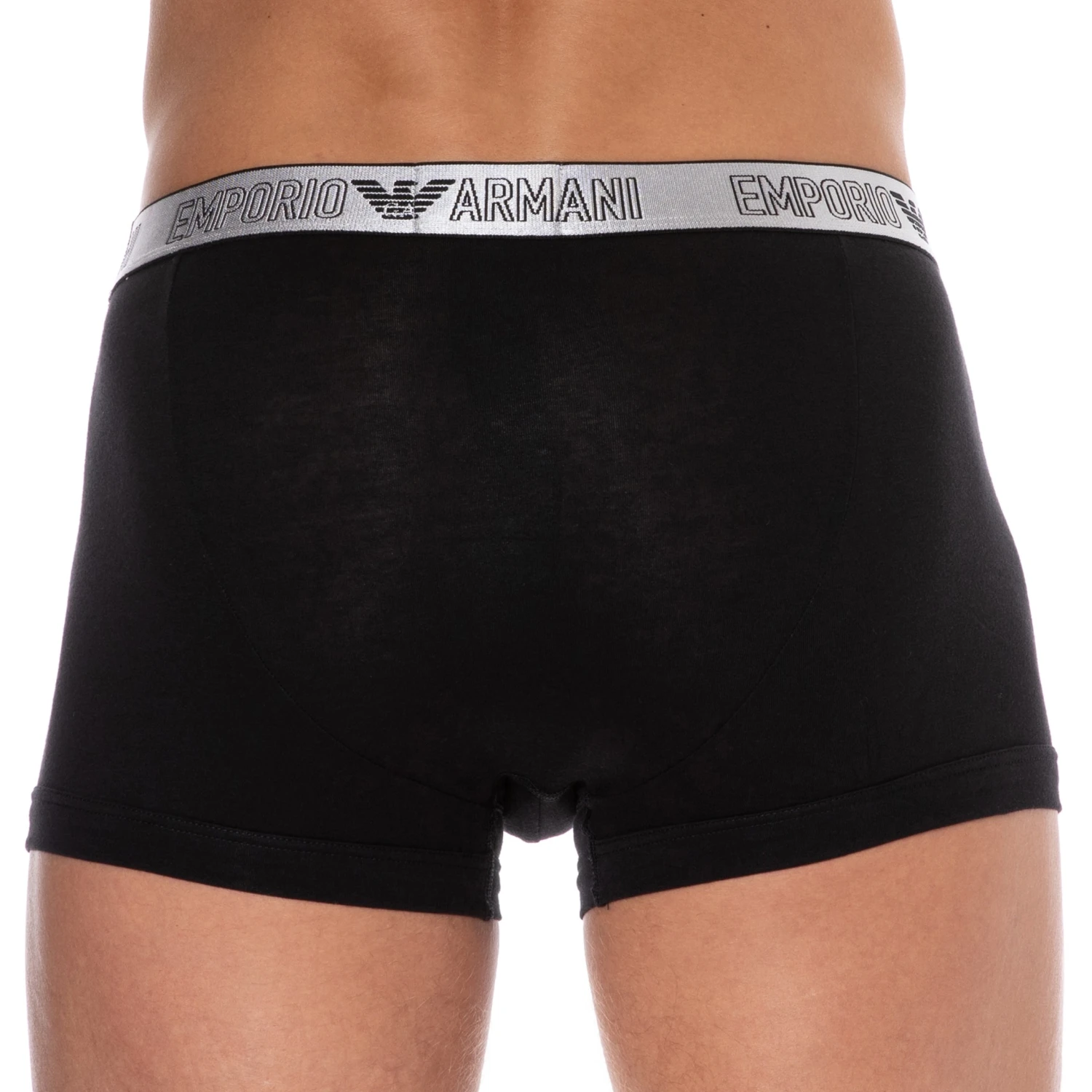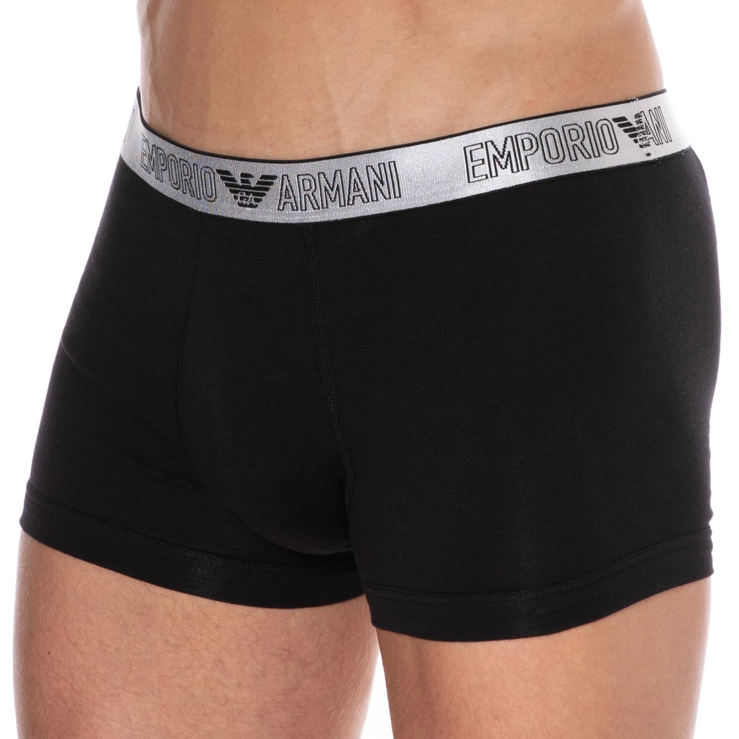 Boxer trÚs doux et confortable en coton extensible. Détails de couleur argentée. Coupe taille basse simple et élégante. Poche frontale doublée. Ceinture élastique signée Emporio Armani.