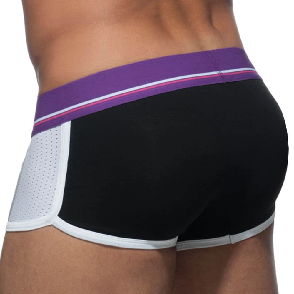 Boxer taille basse en coton trÚs doux et agréable à porter. Les mousses amovibles valorisent naturellement votre anatomie, devant comme derriÚre. EmpiÚcements en mesh respirant sur les cÎtés. Bordures de couleur contrastée. Ceinture élastique signée Addicted. Fabriqué à Barcelone.