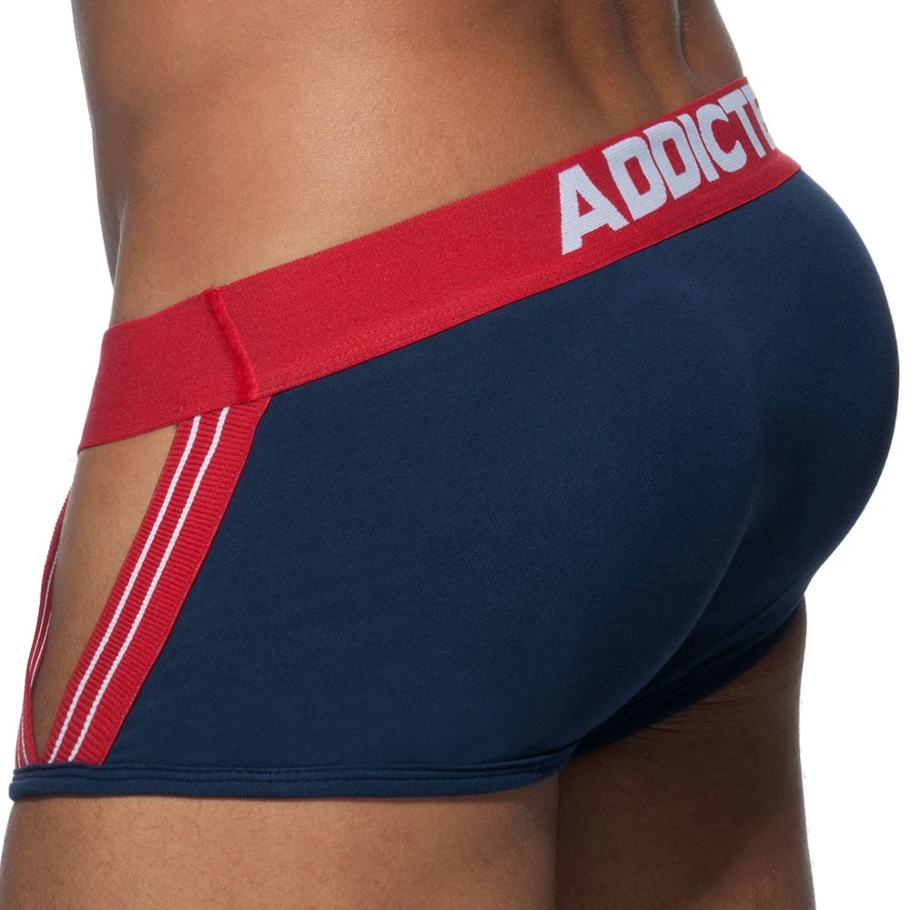 Boxer taille basse en coton trÚs doux et agréable à porter. Les mousses amovibles valorisent naturellement votre anatomie, devant comme derriÚre. Ouvertures sexy sur les cÎtés. Ceinture élastique signée Addicted. Fabriqué à Barcelone.