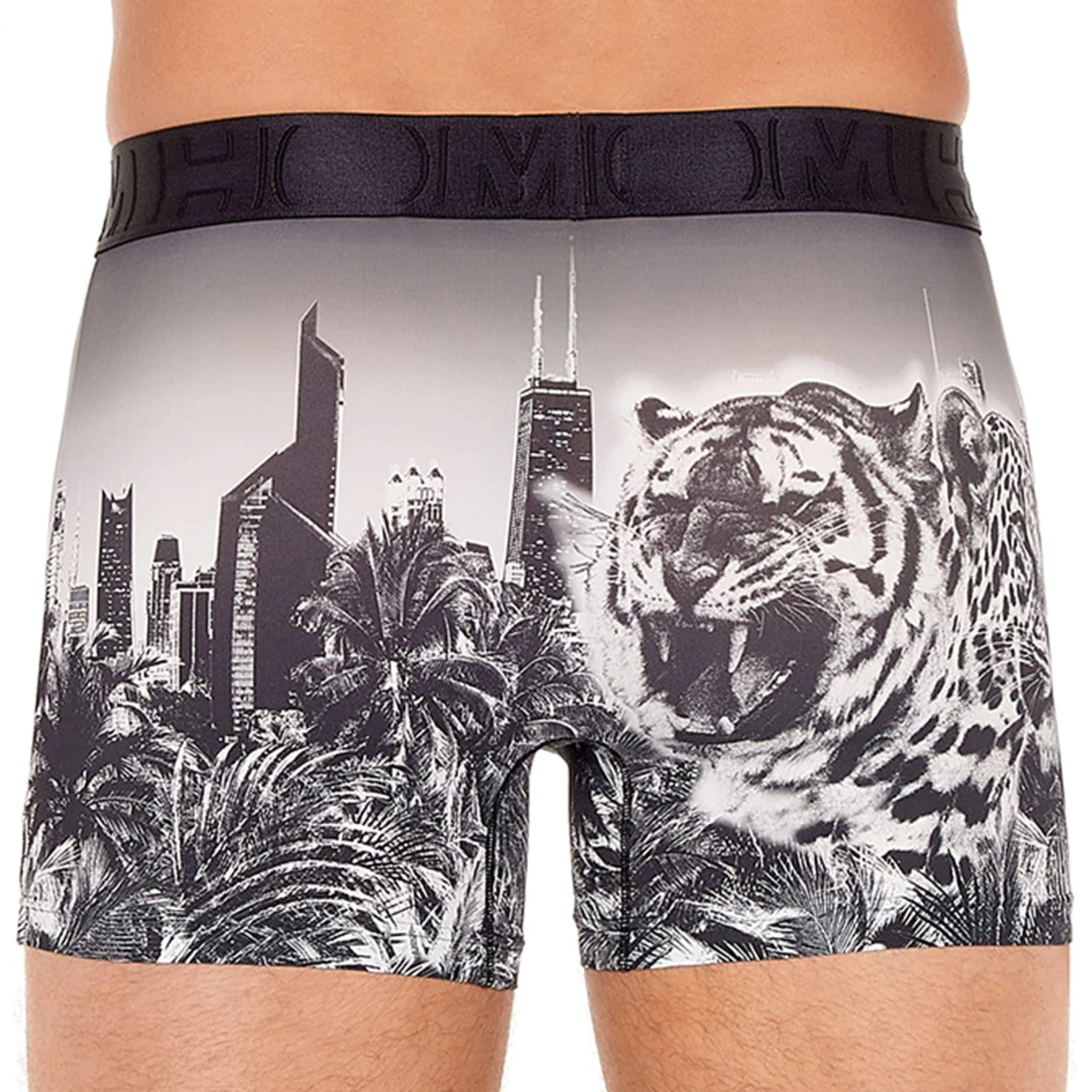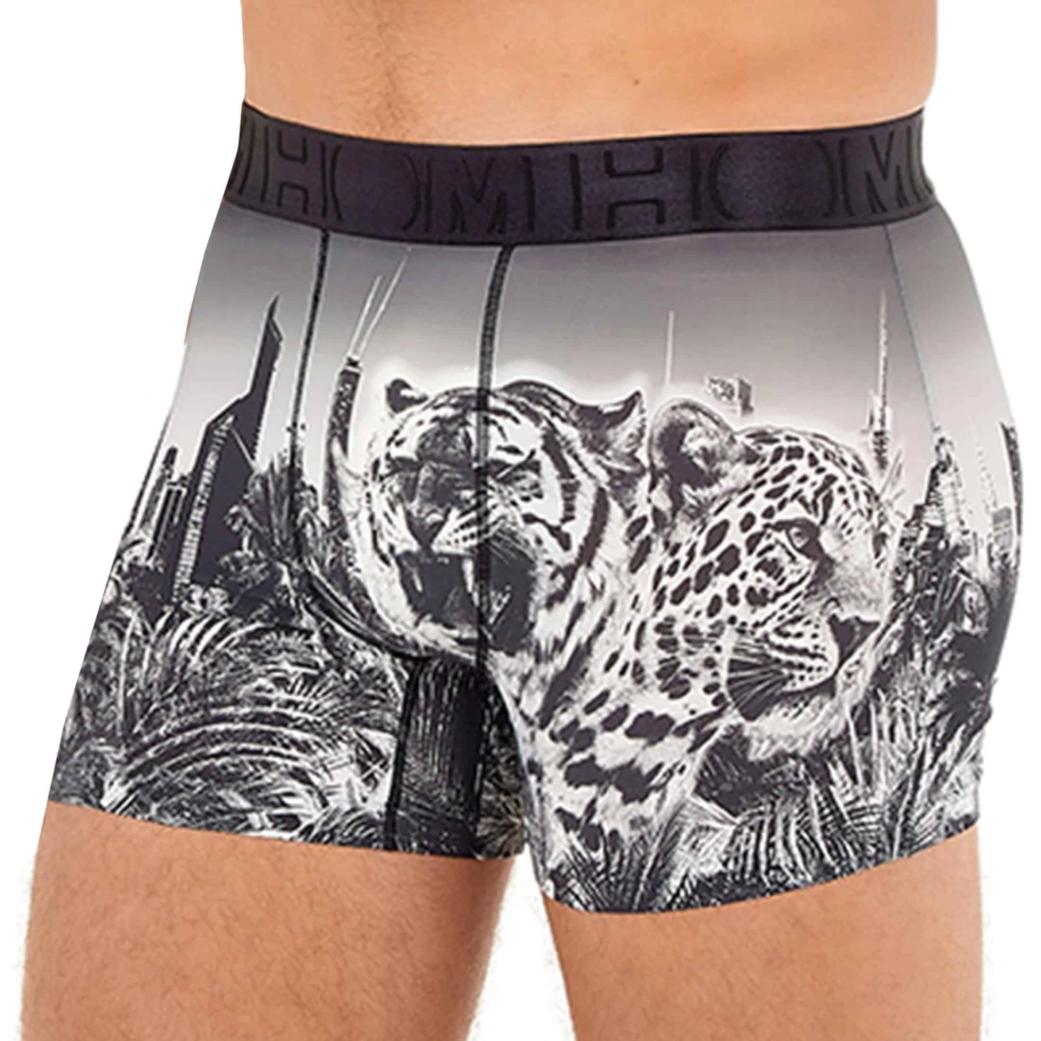 Boxer en microfibre extensible, fluide et brillante séchant rapidement. Tissu de qualité supérieure certifié Oeko-Tex. Imprimé exclusif créé par le tatoueur Willy. Poche frontale doublée. Ceinture élastique signée HOM.