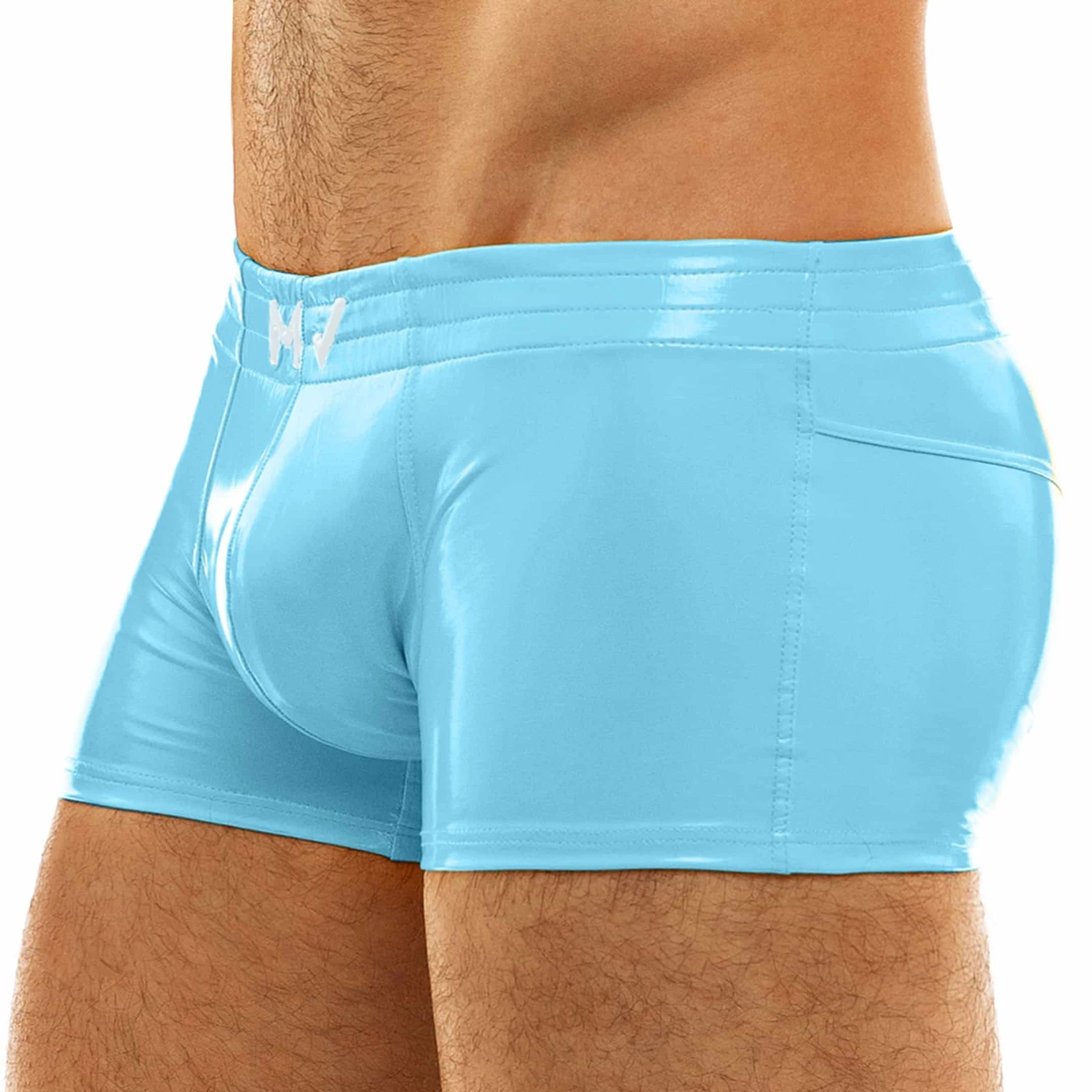 Boxer trÚs sexy en vinyle brillant pour un look fetish. Ceinture élastique recouverte signée MV en relief.