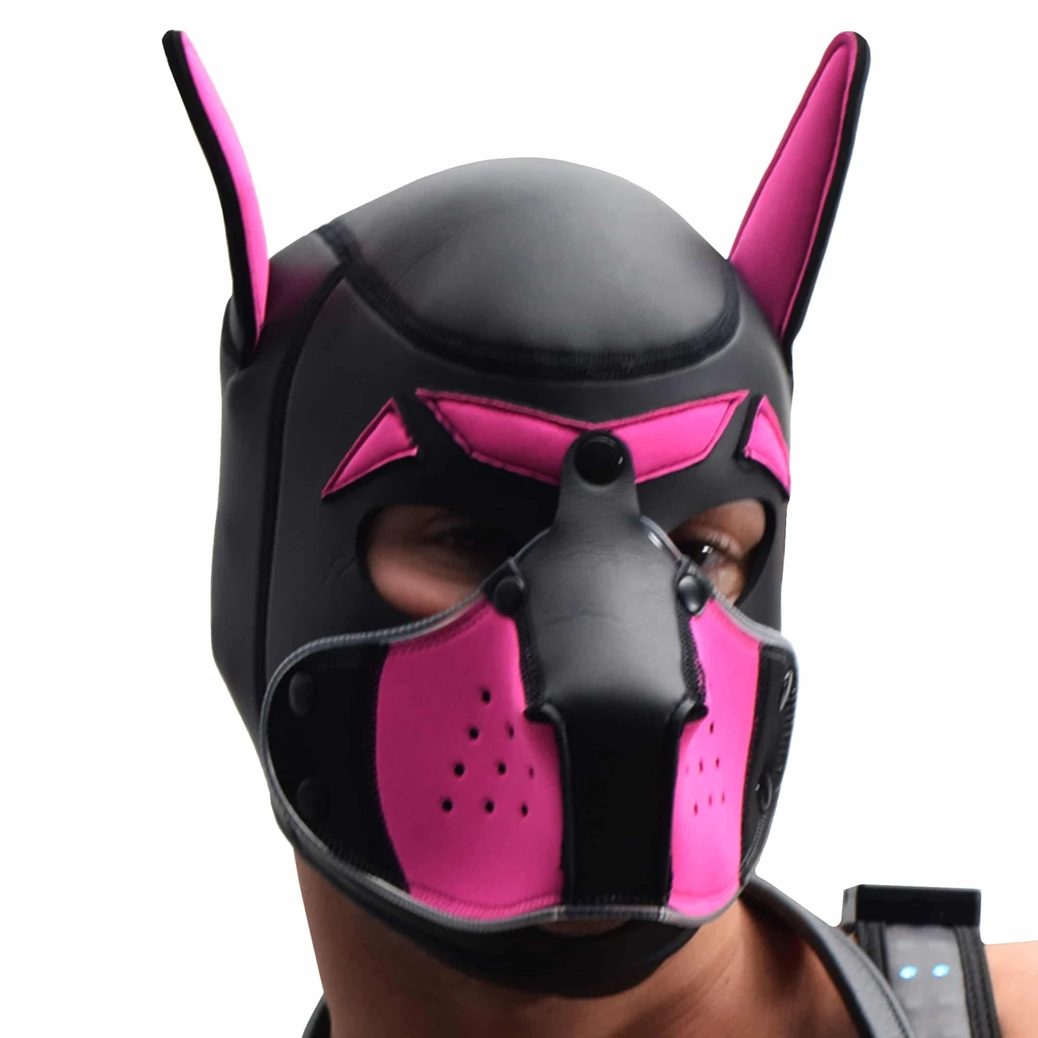 Masque de chien intĂ©gral en nĂ©oprĂšne caoutchoutĂ©, pour s’adonner Ă de jeux de rĂŽle trĂšs fetish. Museau respirant amovible par boutons-pression. LumiĂšres LED intĂ©grĂ©es avec modes fixe et clignotant. Sourcils fendus et oreilles souples. Anneau mĂ©tallique en D et logo Breedwell Ă l’arriĂšre de la tĂȘte. LivrĂ© avec un cĂąble de chargement USB. Taille S/M pour un tour de tĂȘte (mesurĂ© au niveau des sourcils) de 56 Ă 58 cm. Taille L/XL pour un tour de tĂȘte de 59 Ă 61 cm.