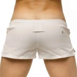 Caleçon en pur coton, lĂ©ger et agrĂ©able Ă porter. Coupe taille basse ajustĂ©e. Motif Ă rayures. La poche frontale intĂ©rieure en mesh apporte confort et maintien. Braguette factice. Ceinture Ă©lastique. Logo Marcuse brodĂ© sur la cuisse gauche et Ă l’arriĂšre.
