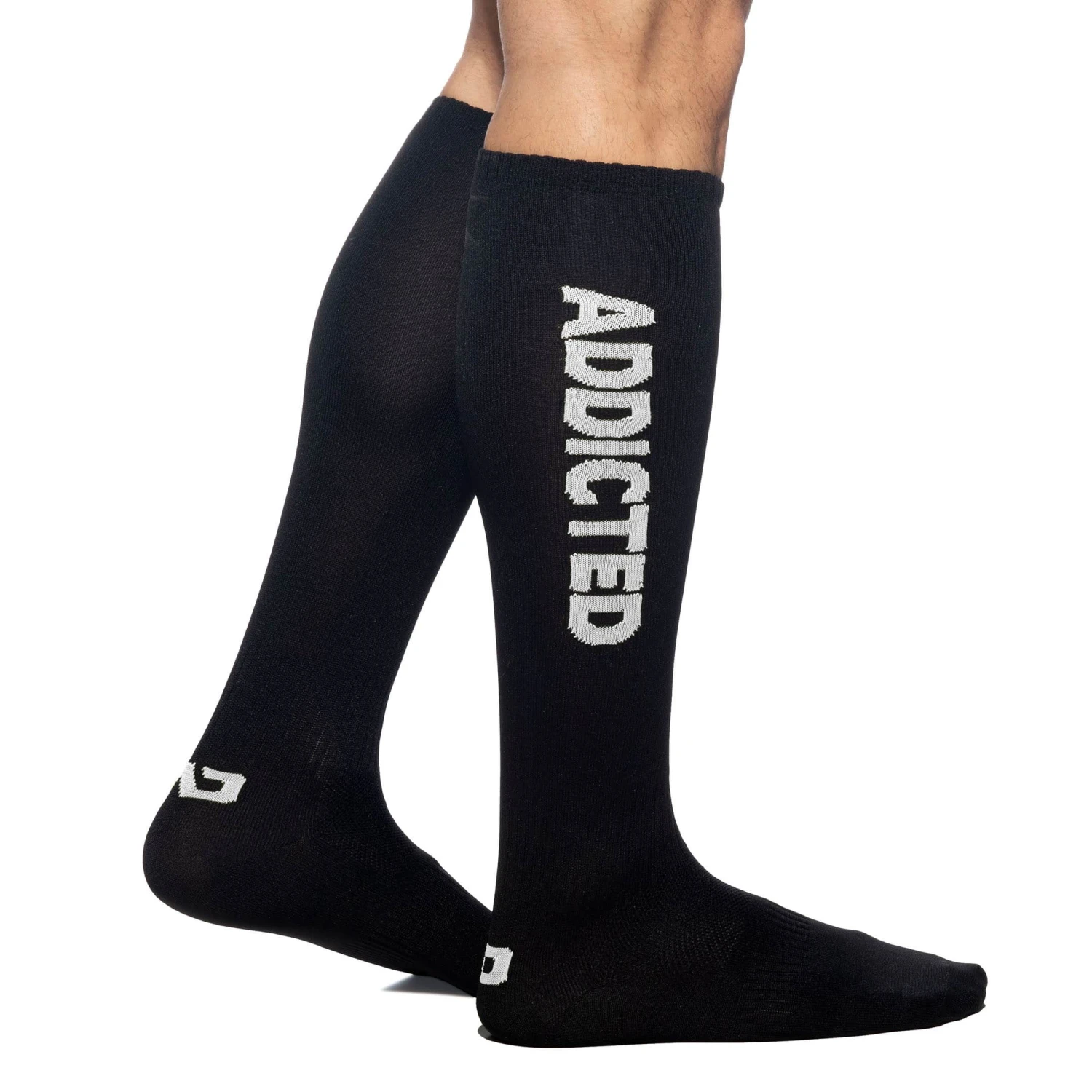 Chaussettes montantes en microfibre. Inscription Addicted sur la jambe et logo sur la cheville. Semelle renforcée. Taille S/M : 41-43 , taille L/XL : 44-47.