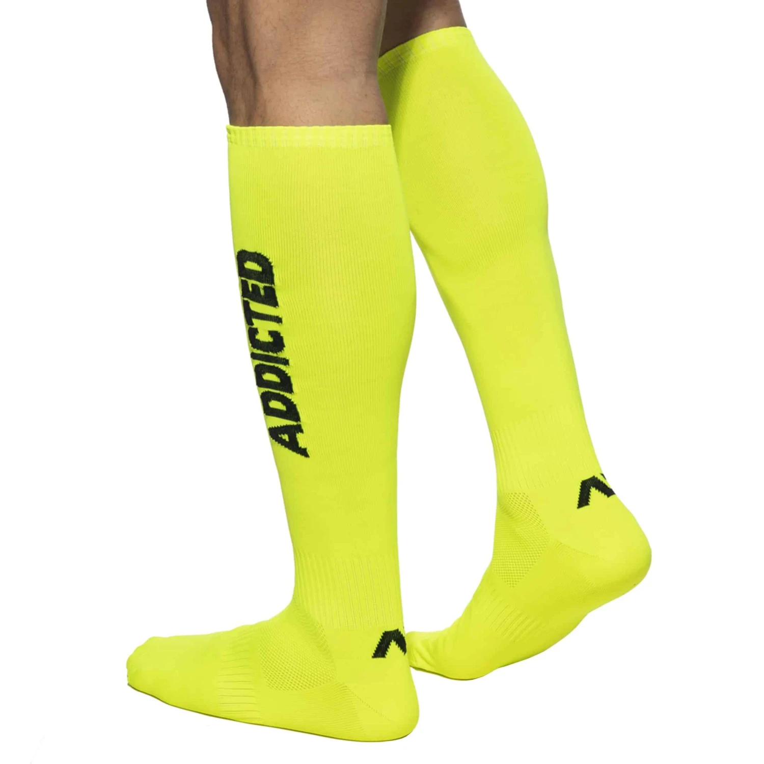 Chaussettes montantes en microfibre super douce de couleur fluo. Inscription Addicted sur la jambe et logo sur le talon. Taille S/M : 41-43 , taille L/XL : 44-47.