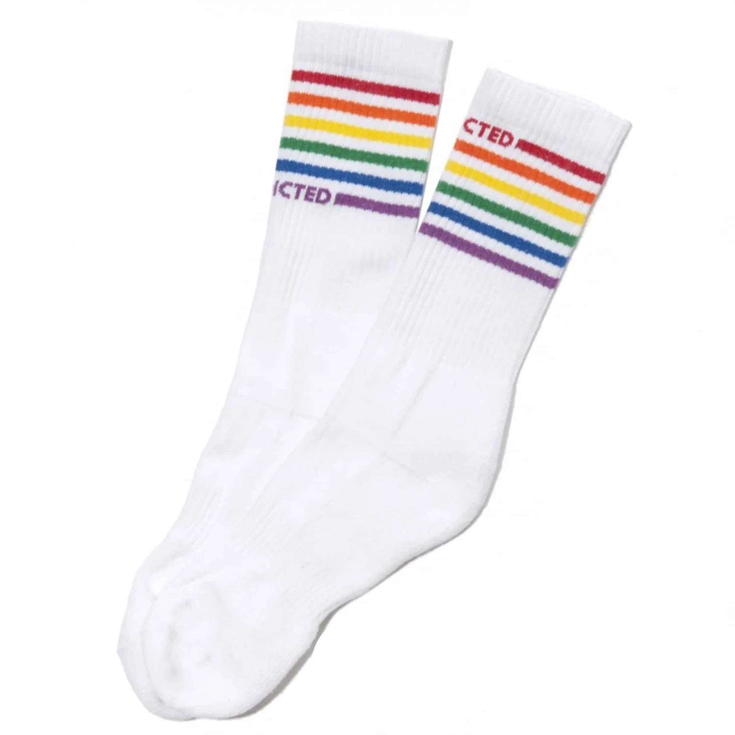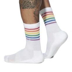Chaussettes sport mi-mollet en mĂ©lange doux et confortable Ă base de coton. Semelle renforcĂ©e avec finition bouclette. Bandes contastĂ©es aux couleurs de l’arc-en-cied. Taille S/M : 41-43 , taille L/XL : 44-47.