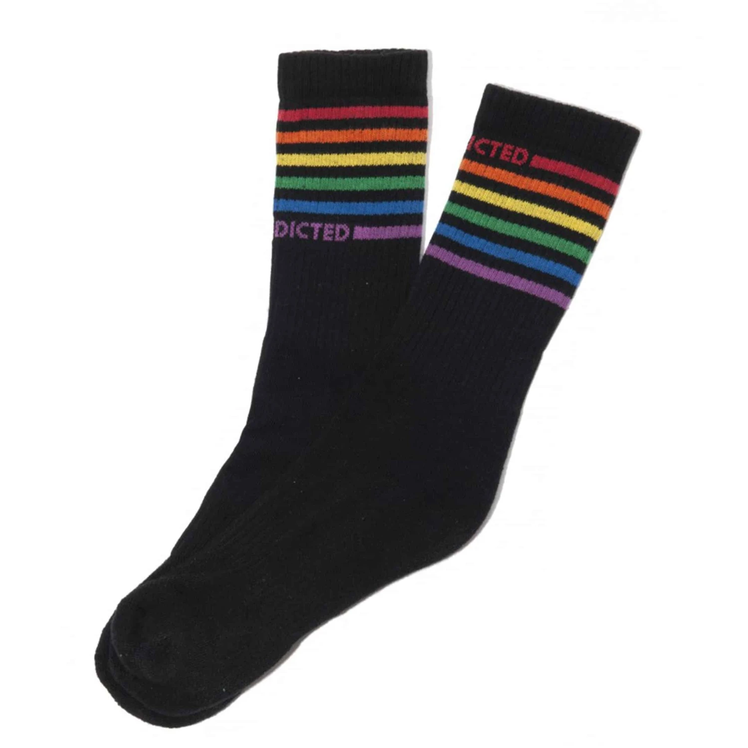 Chaussettes sport mi-mollet en mĂ©lange doux et confortable Ă base de coton. Semelle renforcĂ©e avec finition bouclette. Bandes contastĂ©es aux couleurs de l’arc-en-cied. Taille S/M : 41-43 , taille L/XL : 44-47.