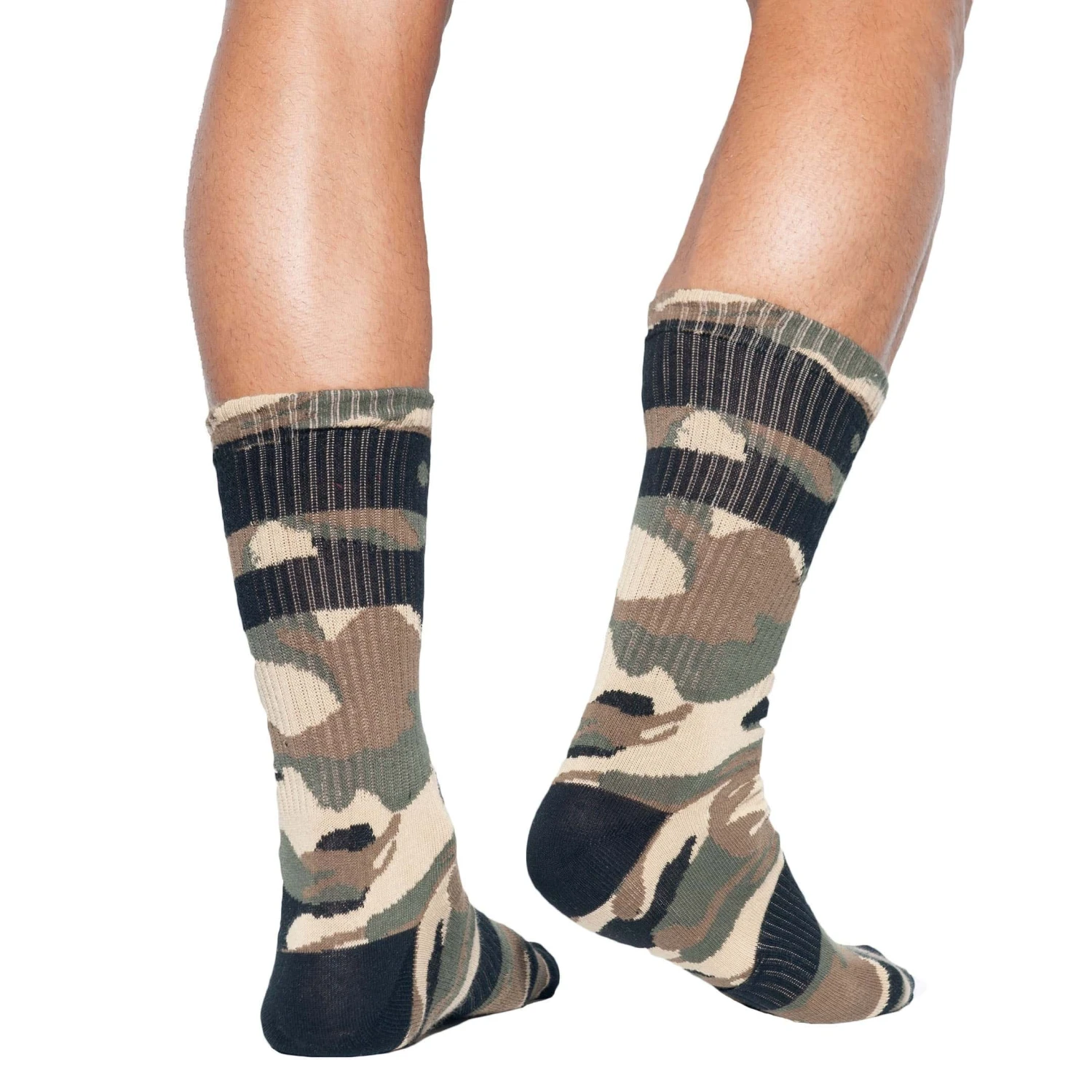 Chaussettes mi-mollet en coton élasthanne. Motif camouflage. Signature ES Collection.Taille S/M : 39-42, L/XL : 43-45.