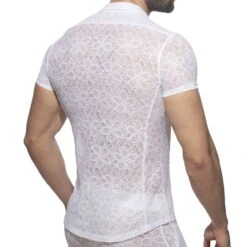 Chemisette trĂšs luxueux en dentelle transparente dĂ©corĂ©e d’un motif floral. Coupe cintrĂ©e. Fermeture 5 boutons. Logo Addicted en silicone sur la poitrine gauche.