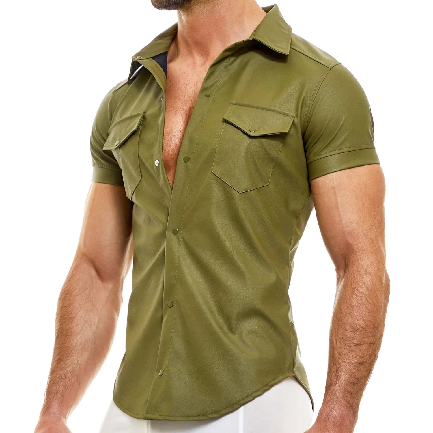 Chemisette trÚs luxueuse en microfibre douce et confortable imitant parfaitement le cuir. Coupe cintrée. Fermeture par 6 boutons-pression. 2 poches à rabat sur la poitrine. Logo métallique Modus Vivendi en haut du dos.