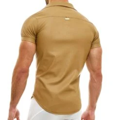 Chemisette trÚs luxueuse en microfibre douce et confortable imitant parfaitement le cuir. Coupe cintrée. Fermeture par 6 boutons-pression. 2 poches à rabat sur la poitrine. Logo métallique Modus Vivendi en haut du dos.