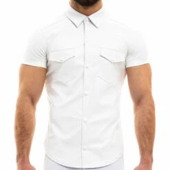 Chemisette trÚs sexy et luxueuse en microfibre imitant le cuir. Coupe cintrée. Fermeture 6 boutons. 2 poches à rabat sur la poitrine. Logo métallique Modus Vivendi dans le dos.