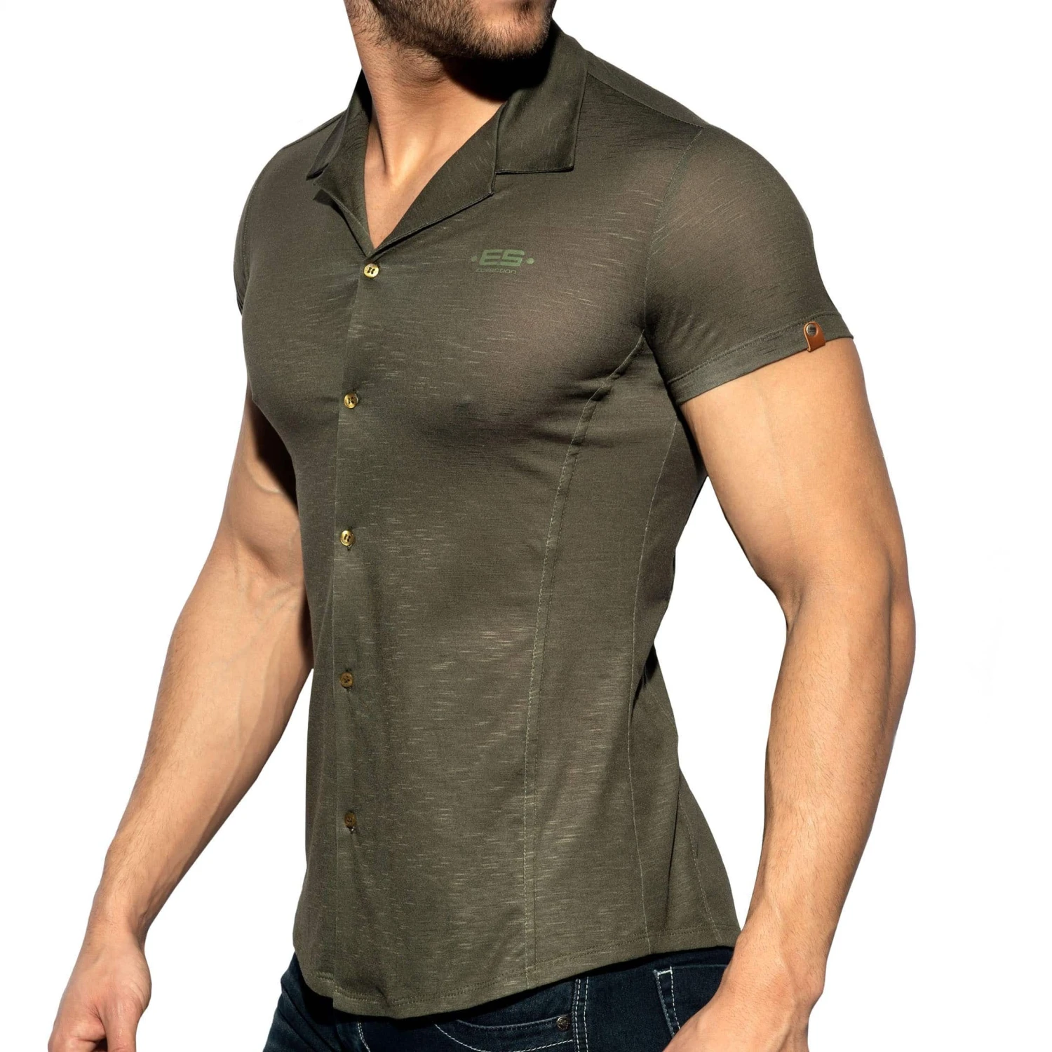 Chemisette en microfibre fine, légÚre et respirante de couleur unie. Coupe cintrée trÚs ajustée. Fermeture 5 boutons. Epingle métallique sur la manche gauche. Logo ES Collection sur la poitrine.