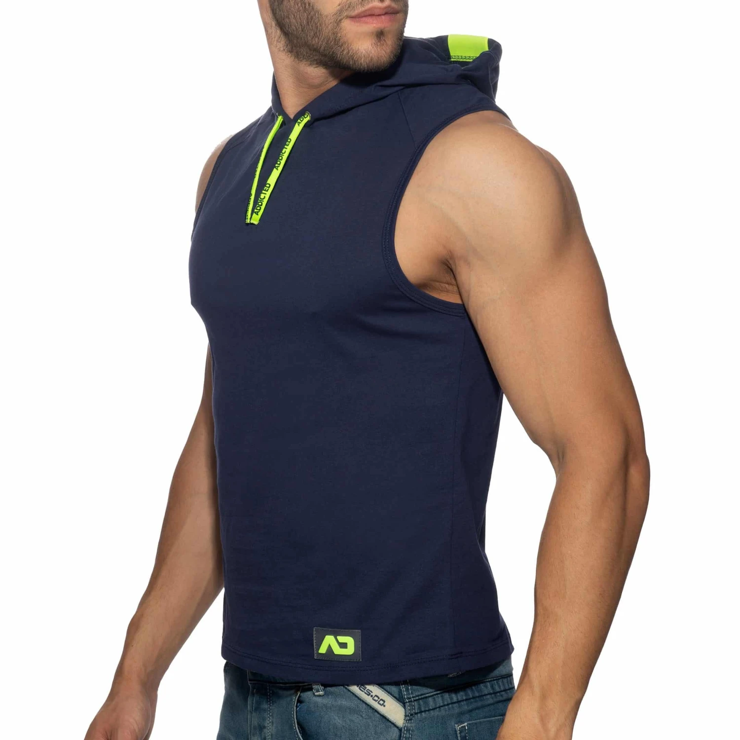 Débardeur sport en pur coton doux et confortable. Coupe ajustée pour mettre en valeur votre musculature. Bande signée Addicted sur la capuche. Détails de couleur fluo. Cordon de serrage. Logo AD en silicone.