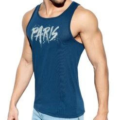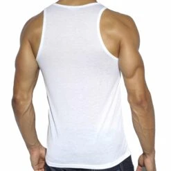 Débardeur 100% coton, sexy et confortable, idéal pour le sport. Coupe ajustée avec dos nageur et col en U profond. Imprimé Addicted ton sur ton sur la poitrine gauche et dans le dos.