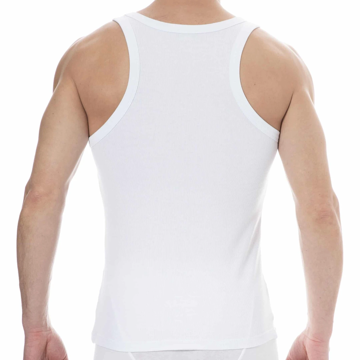 Débardeur très confortable en coton stretch côtelé. Surpiqûres en V sur le col. Bordures blanches. Logo Diesel Denim Division.