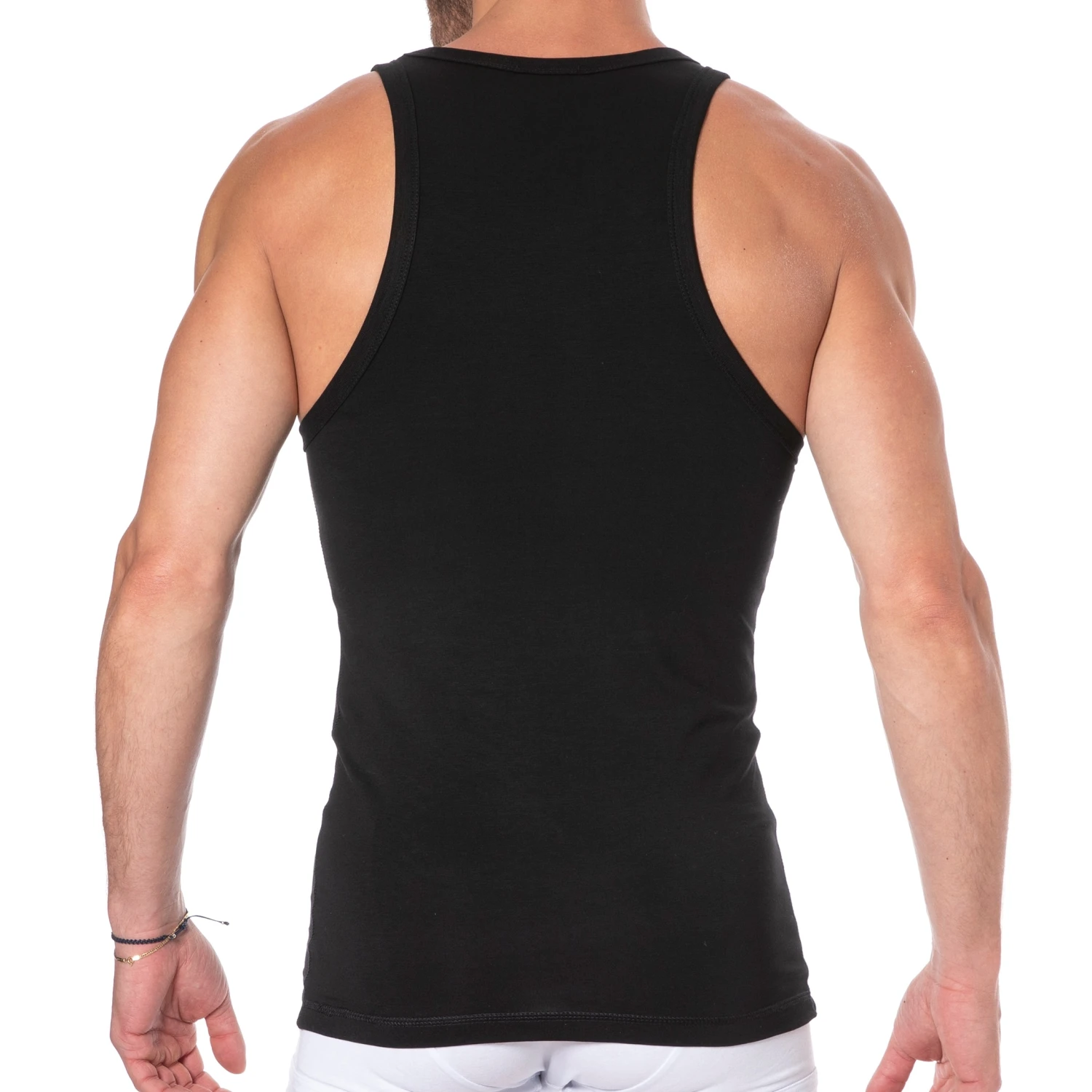 Débardeur trÚs confortable en coton stretch Supima trÚs doux. Surpiqûres en V sur le col. Coupe ajustée. Logo Diesel imprimé sur la poitrine.