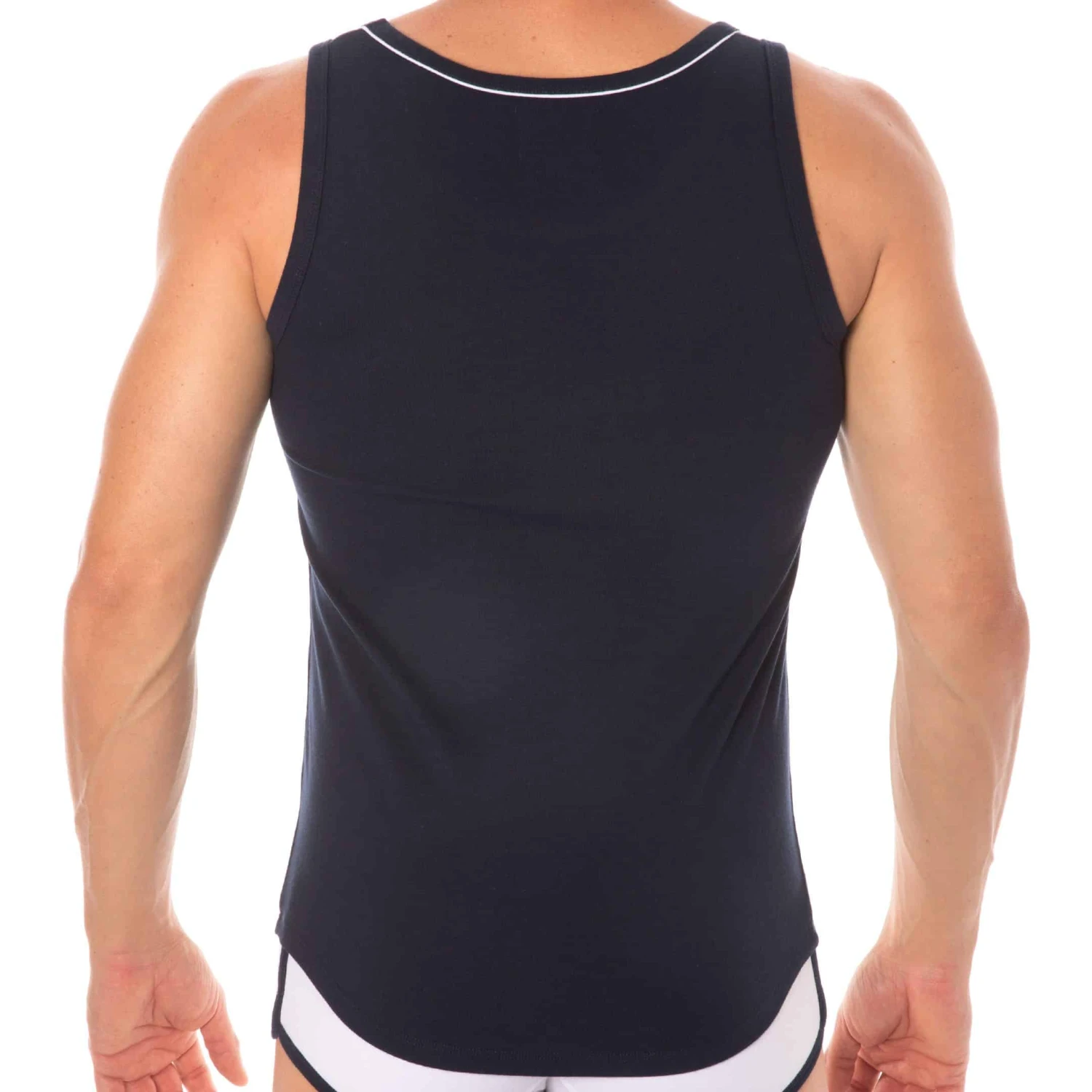 DĂ©bardeur sport et sexy en coton premium doux et extensible de couleur intense. CintrĂ© juste comme il faut, il valorisera votre musculature sans gĂȘner vos mouvements. Coupe courte et arrondie en bas, pour tomber parfaitement sur un pantalon. Le col rond est subtilement soulignĂ© par un liserĂ© de couleur contrastĂ©e. Logo SKU sur la poitrine.