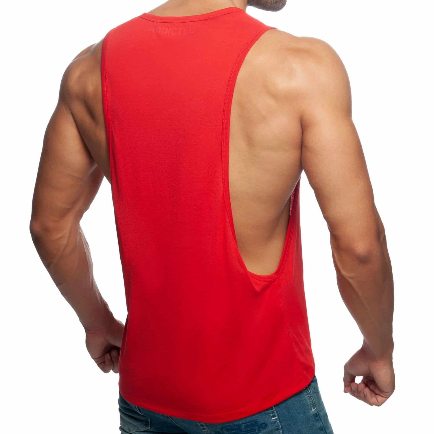 Débardeur en tissu trÚs fin et confortable, idéal pour le sport. Large ouvertures sous les bras. Imprimé Addicted ton sur ton sur la poitrine gauche et dans le dos.
