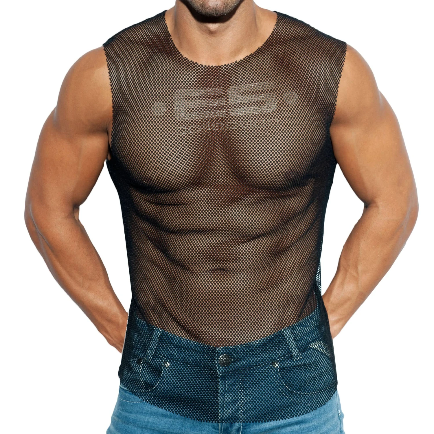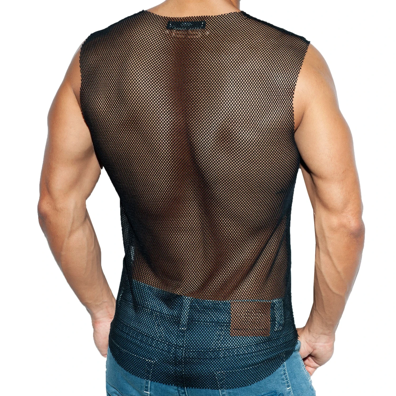 DĂ©bardeur trĂšs sexy en mesh sport transparent, dont le maillage large laisse peu de place Ă l’imagination. Coupe longue arrondie en bas. Logo ES Collection contrastĂ© sur la poitrine et dans le dos.