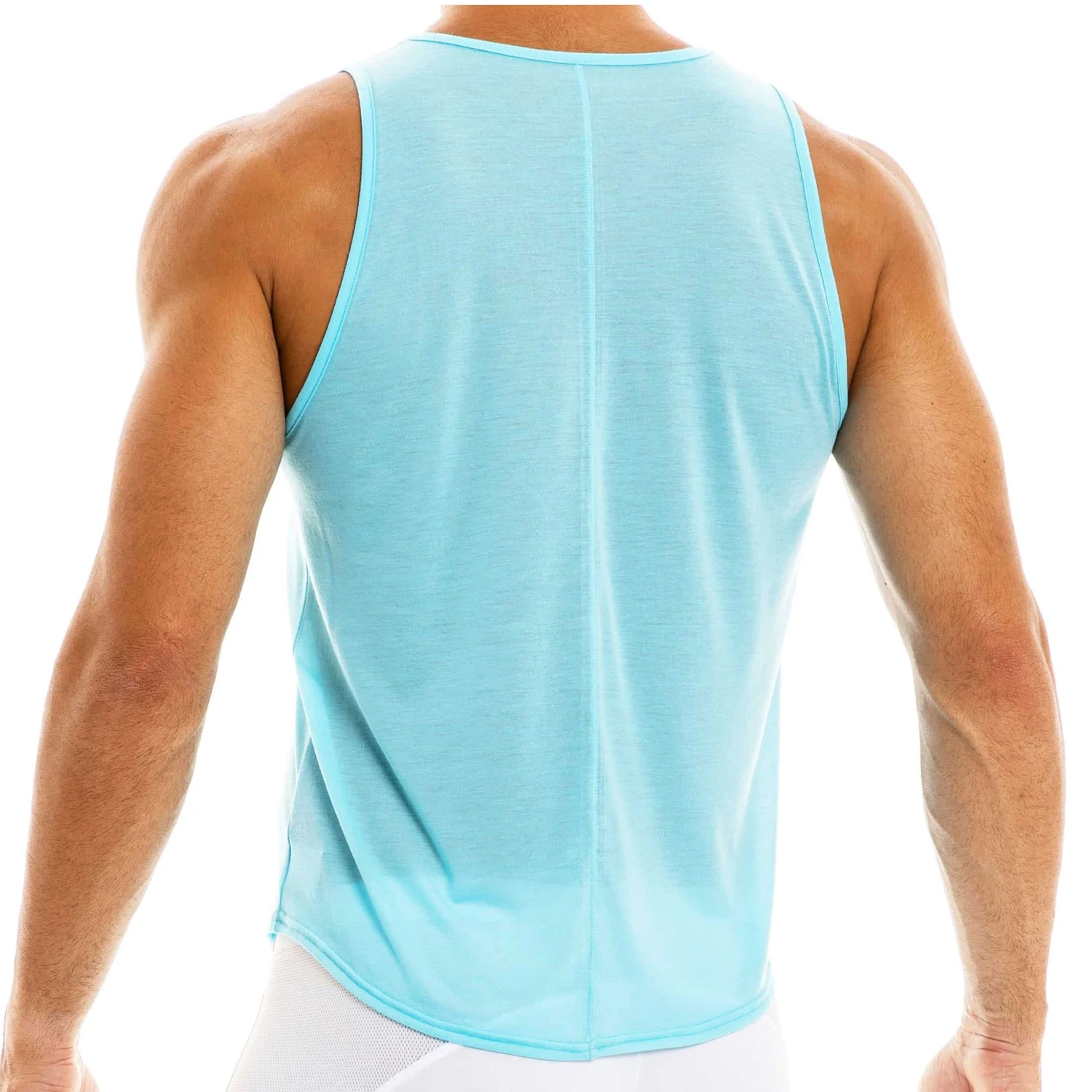 Débardeur de couleur intense en microfibre ultra fine, légÚre et semi-transparente. Coupe ajustéé, courte et arrondie en bas, pour tomber parfaitement sur un pantalon. Petite poche sur la poitrine signée du logo Modus Vivendi.