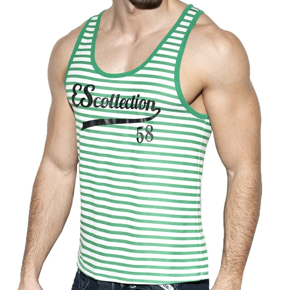 DĂ©bardeur en microfibre douce imprimĂ©e d’une rayure mariniĂšre. Coupe ajustĂ©e. Logo ES Collection 58 sur la poitrine.