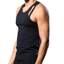 Débardeur trÚs sexy en coton doux et confortable. Design original à bouble bretelle de chaque cÎté. Coupe trÚs ajustée avec dos nageur. Edition limitée.