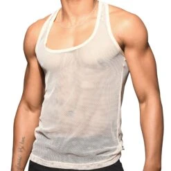 Débardeur trÚs sexy en résille non doublée pour une totale transparence. Coupe trÚs ajustée avec col carré et dos nageur. Edition limitée.
